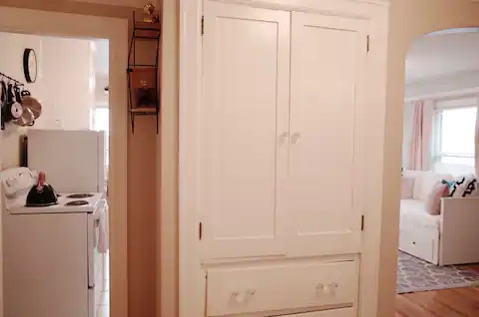 This is a great living space with vaulted ceilings, unique vintage archways, and refinished moldings. Each unit offers plenty of natural light. The kitchen offers a lot of storage with plenty of room for a kitchen table, office, or whatever best suits your needs. Utilize your dream walk-in closet for all your storage needs.